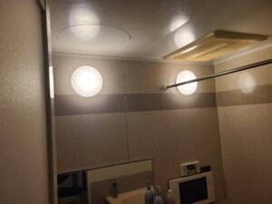 照明器具も交換させて頂きました🎵 既設の照明はカバーが破損していて水回りですので漏電等の心配がございました。カバーのみの交換で対処できたとは思いますが年数が経っていたので部品供給不可でしたので本体ごと交換となりました🐱