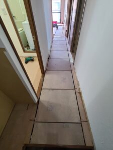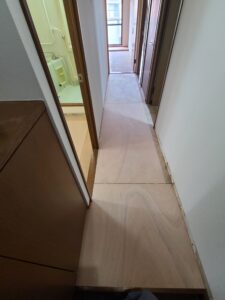 本日は廊下のゆかなりが気になるとの依頼でした😃 毎日歩く床ですから気になりますよね😭 原因は古い釘が抜けかけて音が数ヶ所ありましたのである程度開口し復旧しました☺️